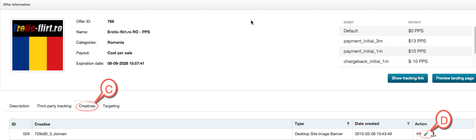 The banners can be found at the Offer detail in the Creatives folder. Here you can find banners for the selected offer. The code of this banner may be obtained by clicking on the get code button.