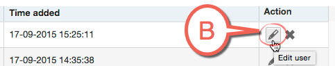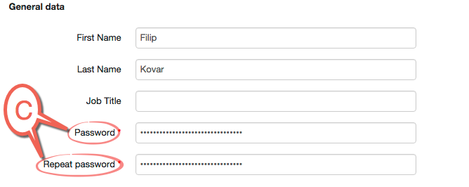 The password may be changed in the User management (My/Accounts). Select the user for whom the password needs to be changed. Then click on the “brush” icon (Edit user). A window will be opened where the user data may be edited, including the password.